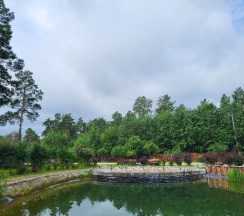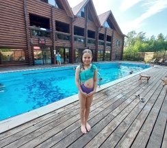 Очень классное место: детская площадка, подогреваемый бассейн, на территории есть контактный зоопарк, территория ухоженная и чистейший воздух!