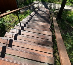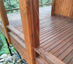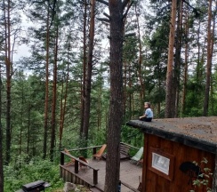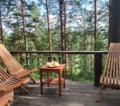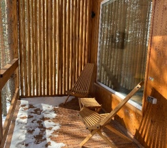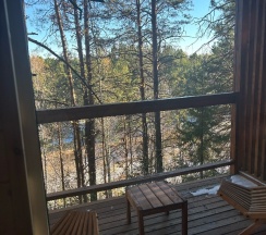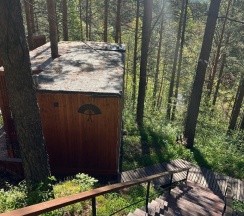 Очень понравился домик N4 - ВЕЕР с большим понарамным окном в лес и уютной лаунж-зоной с мангалом.