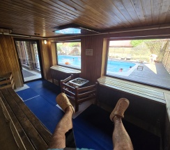 Территория красивая, бассейн и сауна хорошие. В бассейн пускают до 60 человек. Ну это очень много, для комфортного плавания необходимо не более 30 человек!