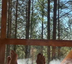 До бани и бассейна мы так и не дошли. Зато много гуляли по лесу. Дошли до Аннушкиного моста.