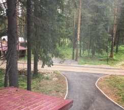 Красивое место, хорошая площадка для детей, номер на 4. Столовая дорогая, ассортимент маленький. Очень плохо, что в корпусе нет микроволновки, так как столовая не понравилась. Персонал вежливый.