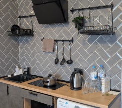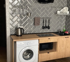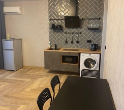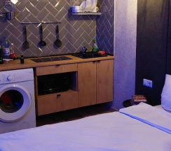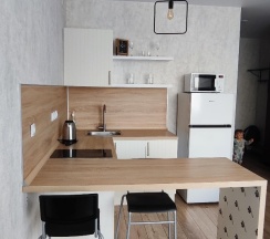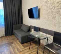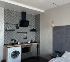 Удобное расположение, рядом набережная, парк, метро. Сам номер хороший, просторный, комфортный, своя кухня, балкон. Все новое, чистое, всем довольны.