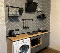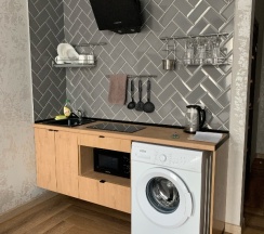 Нам очень понравилось. Вид шикарный на реку и мост. Очень чисто и опрятно. Матрас мягкий, есть микроволновка, стиралка с порошком, утюг, сушилка. Удобное и красивое расположение. Все рядом. Очень вежливый администратор.