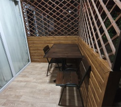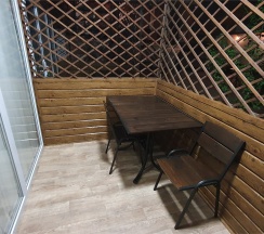 Понравилось: Большой уютный номер. Отделка потолка и стен вагонкой из натурального дерева. Собственная веранда с обеденной зоной.