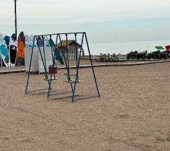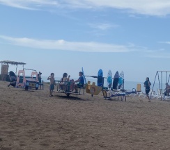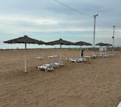 Были здесь на пляже по рекомендации местных жителей. Есть лежаки и укрытия от солнца (платные), но можно их не брать и просто отдохнуть на пляже (бесплатно). В аренду дают сапы и прочие штуки. В море достаточно много камней, идти нужно аккуратно. Глубина набирается плавно. Доехать из Дербенте можно на такси за 300 руб примерно. Есть чмстый туалет при отеле, можно сполоснуть ноги на выходе с пляжа, есть раздевалки.