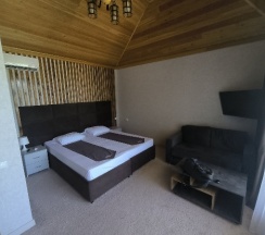 Уютно, чисто, тихо. Были проездом в октябре. Приятные впечатления остались от отеля) Двор весь в зелени, много беседок для отдыха, мангальная зона, есть баня. Номер был с одной двуспальной кроватью, в номере есть все необходимые предметы.