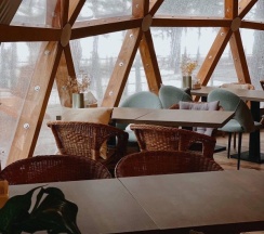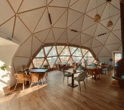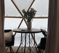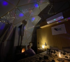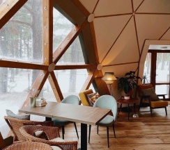 Снимали геокупол на первой линии, к сожалению на сутки так как мест совсем не было, даже заранее) Задумка классная, с таким видом жить, купол оборудован всем чем можно, посуда на кухне хорошая, брикеты в камин есть, средства от Комаров, кондиционер, на улице возле каждого купола стол,лавки,шезлонг,мангал. Места красивые,лес,залив! Ресторан это отдельная песня!Всё очень вкусно готовят! Обслуживание на 11из10! Ресторан высокой кухни, в то же время домашней и по ценам не кусается абсолютно! Михаил, шеф повар ресторана, спасибо вам огромное, вы настоящий профессионал, коих в последнее время встретишь редко. Четкая слаженная работа, вкусно поставленное меню. Заказывайте мясо маринованное у Михаила, язык проглотите как это вкусно! Михаил действительно знает свою работу и сделал наш отдых ещё более незабываемым! Спасибо, вернёмся обязательно!
