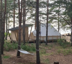 Провели здесь выходные в шатре Люкс. Очень красивое место - прямо у залива, но ветер не сильный. Персонал приятный и вежливый. У нас сломалась лампа - пришли уже через 10 минут и поменяли. На территории есть неплохой ресторан, цены приемлемые, как в среднем ресторане СПб.