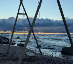 Дивное место на берегу Финского залива. Очень хорошо спится в круглом домике, когда снаружи бушует гроза, а в горячей купели плавают вкуснейшие апельсинки. Точнее, плавали.