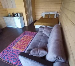 Мы отдыхали на базе Алтай дрим в июле 25 года. Нам все очень понравилось. Вчетвером было не тесно, спальные места большие и очень удобные. В домике чисто, уютно. Интерьер оформлен стильно. На базе тихо, хотя домики расположены близко, мы соседей не слышали. В домике душ, туалет, кухня. На территории батут и качели. Большая лужайка. Было не жарко в домике в жару и свежо. Уютно. Нам все понравилось. Спасибо хозяйке!!!