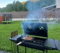 Идеально для отдыха с семьей, у каждого домика есть мангальная зона и небольшая терраса, где можно посидеть. Внутри также есть кухонная зона со всем необходимым.