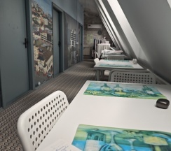 Чистое, светлое, свежее помещение. Есть кухня с возможностью приготовить пищу, также душевые кабины, стиральная машина, шкафчики для хранения вещей. Оборудована и зона отдыха: столики для неспешного времяпрепровождения, телевизор. Можно воспользоваться утюгом и гладильной доской. Конечно, есть сушилки для белья. В коридоре и в каждой комнате - кондиционер.