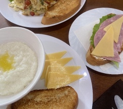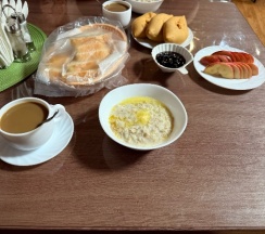 Завтрак простоват(каша, пирожок, чай),ну да ладно, нормально. Пошли на встречу с изменением времени завтрака. Молодцы.