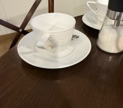 Завтраки покупали на месте. Они вкусные. А вот кофейные чашки с налётом, факт, потому, что их тут же на ресепш моет администратор без применения образивных чистящих средств.