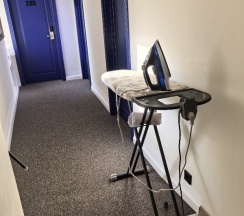 Удобно то, что на четвёртом этаже стоит гладильная доска, на втором и четвёртом этаже кулеры с питьевой водой, очень удобно. Присутствуют в душе необходимые гель и шампунь, мыло и крем у раковины. Очень приятно, что есть халаты и одноразовые тапочки.