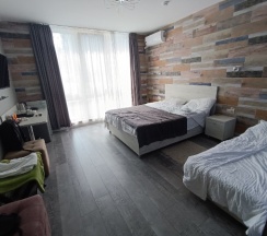 Хорошая гостиница, просторный номер, чистый бассейн, находится рядом с остановкой, море недалеко, уборка в номере каждый день, балкона нет, но в ванной комнате был полотенцесушитель, поэтому проблем не возникло