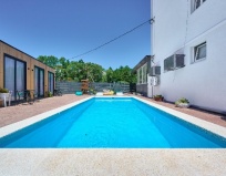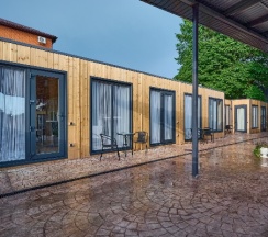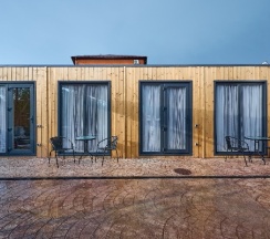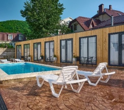Мы жили в домике. Очень классный деревом еще пахнет. Всё новое. 6 спальных мест для большой семьи. На территории есть хороший бассейн , общпя кухня где можно готовить. Очееь прият6ый персонал. Всё чисто и уютно.