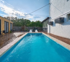 Много сп. мест. На семью их 4-5 есть где развернуться. Бассейн во дворе: чистый, глубокий. Тихое, спокойное место, до леса 5 минут, до моря 9 минут. Местоположение отличное.