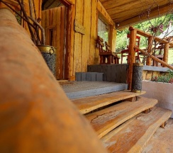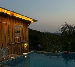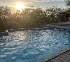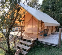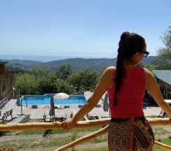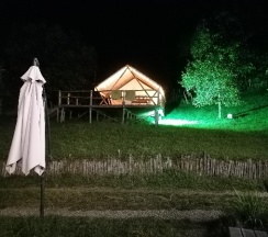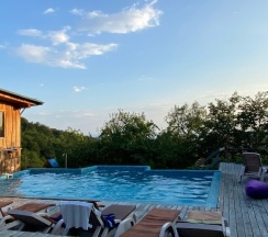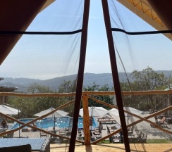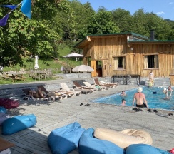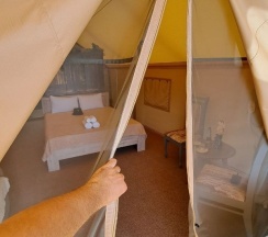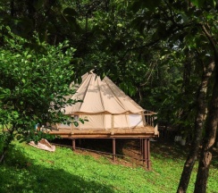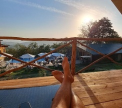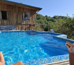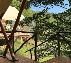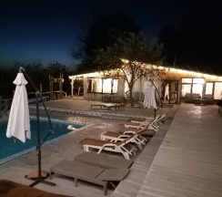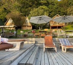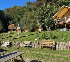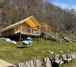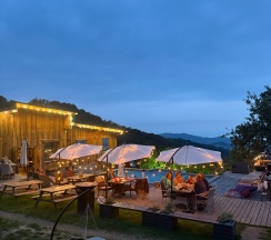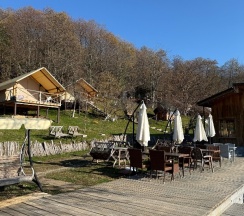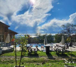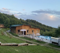 Отличное место для отдыха хоть с детьми, хоть без детей. Оставались на ночевку в эковилле, две комнаты по две кровати, двухспальная и односпалка в каждой, душ и туалет, есть полотенца и все мыльные принадлежности, что очень важно. Бассейн прохладный, охлаждающий в жару, я так понимаю, в холода он с подогревом. Очень уютный ресторан и весь персонал доброжелательный и отзывчивый.