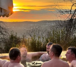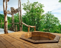 Это не только баня, хотя она на 10⭐️ без сомнения. На территории уютные домики из дерева с туалетом и душевой. Можно с собаками, можно с детьми. Прекрасный, не глубокий бассейн с теплой водой. Ресторан с такой подачей, будто ты в центре города, вкусно невероятно. Ну а виды на горы и огромное море, ни с чем не сравнить. Для души и тела, только сюда и никакие извилистые дороги не помешают. Много активностей, для взрослых и детей. Спасибо персоналу и всем, кто создал этот райский уголок!