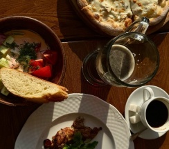 Это место идеально подходит для тех, кто ищет гармонию с природой и уютный отдых вдали от городской суеты. Шикарный вид на море открывается прямо с территории комплекса — каждый день начинался с потрясающего зрелища восходящего солнца над водной гладью. Домики выполнены в настоящем эко-стиле: все из натурального дерева, что создает ощущение тепла и уюта. Внутри каждого домика есть все необходимое для комфортного проживания, а благодаря заботе персонала, ты чувствуешь себя как дома.Отдельно хочется отметить зону отдыха с бассейном, баней и купелью. После активного дня приятно было расслабиться наслаждаясь свежим воздухом.Баня — настоящая находка для любителей пара и веников!Еда в ресторане заслуживает отдельного внимания. Все блюда приготовлены из свежих местных продуктов, а шеф-повар действительно знает свое дело.