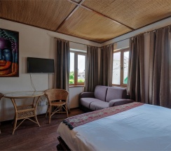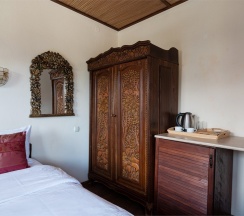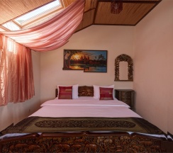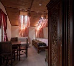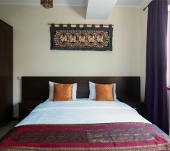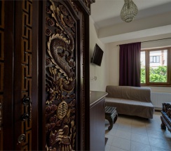 Дизайн номера оформлен в восточном стиле. Комфортный, уютный с раскладным, мягким креслом для ребенка.