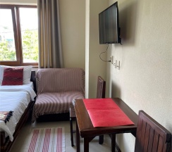Я забронировала отдых в этом отеле на июль-месяц в этом году! Потому что уже отдыхала в этом отеле на первомайские праздники в прошлом году! и меня прям очаровал отдых в отеле "Оазис Тай"! Отличный сервис в отеле - экзотическая настоящая тайская мебель в номере, большая двухспальная кровать, удобный шкаф для одежды, кондиционер, телевизор с плоским экраном, холодильник, электрический чайник, сейф, индивидуальная ванная комната, фен, санузел,туалетно-косметические принадлежности, халаты, тапочки и ароматно пахнущие свежие полотенца ! Ну а гора Ежик на которую выходили окна моего номера это вообще супер!!! Пение птиц - как ласкающий мой слух фон вдобавок ко всему! Вечерами так вкусненько пахло морем и водорослями - так и хотелось вдохнуть этот воздух и не выдыхать его