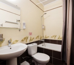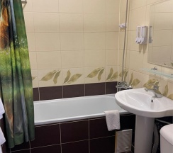 Уютный однокомнатный номер, прекрасно подходит для размещения пар и семей с детьми, оборудованным всем необходимым для комфортного проживания. В номере предусмотрены: большая двухспальная кровать, небольшой раскладной диван или раскладное кресло, шкаф для одежды, кондиционер, телевизор с плоским экраном, холодильник, электрический чайник, индивидуальный санузел с ванной, фен, туалетно-косметические принадлежности, халаты, тапочки.