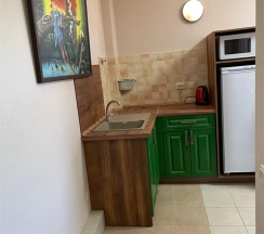 Просторный, изысканный номер с кухонной зоной, прекрасно подходит для размещения семей с детьми, оборудован всем необходимым для комфортного проживания. В номере предусмотрены: большая двуспальная кровать, раскладной диван, шкаф для одежды, кондиционер, телевизор с плоским экраном, холодильник, электрический чайник, сейф, индивидуальная ванная комната, фен, санузел, туалетно-косметические принадлежности, халаты, тапочки.