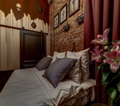 В стандартном жилье можно и дома пожить, а в отпуске хочется новых впечатлений. И это именно то место, где можно переночевать под присмотром графа Дракулы, в астральном мире или в убежище маньяка. Все номера оформлены индивидуально, очень красиво и создают нужное впечатление, есть множество приятных (ужасных) мелочей, персонал также понимает стилистику отеля, а на ресепшене продаются брелоки в виде гробиков. Имеется оформленный в той же стилистике бар, где подают очень неплохие завтраки. Сам отель расположен очень удачно с туристической точки зрения, вблизи Таврического дворца, в пешей доступности Дворцовая площадь, Смольный собор, крейсер Аврора, тюрьма Кресты и множество других достопримечательностей. Единственным упущением, на мой взгляд, является то, что в номере графа Дракулы не установлен гроб, что, впрочем, совершенно не портит впечатление и не снижает оценку отеля.
