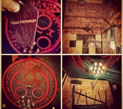 Ходили (28.08.25) в зал с баром. Интерьер вызвал восхищение, он запомнится на всю жизнь. Вокруг стола нас окружал готический интерьер с отсылками на различные хорроры и страхи людей. По телевизору показывали ироничный фильм, снятый организаторами и авторами (предположительно), мы смеялись 🥹