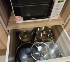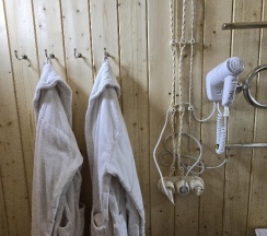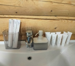 Замечательное место! В домике есть вся необходимая посуда, холодильник, микроволновка и плита. В ванной комнате большое количество средств, полотенца, халаты и тапочки.
