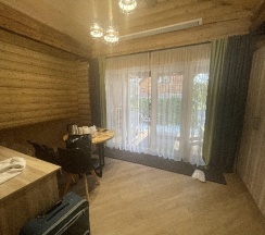 Очень хорошее место для уединения и отдохнуть от шумного города. Начиная как принимает сама хозяйка Екатерина ей прям огромное благодарность. На территории чистота и порядок. Территория не большая но на ней так великолепно уместилось всё тут тебе мангальная зона и детская площадка для деток и бассейн в летние время. В домиках есть всё, что нужно. Это прям 5* отель. Так комфортно и уютно давно не останавливались.