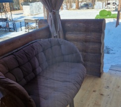 Зимой тоже отличное место, особенно если едете кататься в Манжерок. Домики очень тёплые, супер уютные — чувствуешь себя как дома.