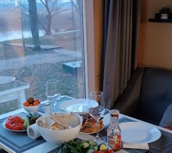 Понравилось: Прекрасные дома в достаточно уединенном месте на берегу реки Преголя. В комплексе два двухэтажных дома, мы успели пожить в обоих. В первом доме (который подороже) имеется сауна с бассейном и хамамом, а также шикарный биллиардный стол на втором этаже. В этом доме три спальни, а также раскладывающийся диван на первом этаже. Во втором доме бани и бильярда нет, но он очень уютный и в нем четыре спальни и диван в холле. В обоих домах идеальная чистота, дорогая мебель (не ИКЕЯ какая-нибудь) и дизайнерский ремонт. На кухне все необходимое (даже кофемашина есть). Очень просторно и уютно. Рядом с домиками уютные беседки с мангальной зоной и всем необходимым (даже подставка для казана есть). На реке имеется собственный причал, есть лодки. Если что-то закончилось - до ближайшего магазина пешком минуты три (не супермаркет конечно, но пиво с сигаретами есть). Вообщем мы прекрасно отдохнули, обязательно ещё вернемся. Хозяевам, Виктории и Олегу, успехов и процветания!