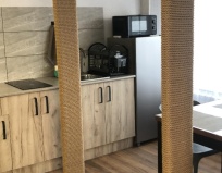 Новый ремонт, новая мебель, бытовая техника и посуда, замечу что все это очень хорошего качества, а не одноразовые вещи которые не прослужат и одного сезона. Отдельно хочется сказать про душевую и сан узел;чисто,сухо,отсутствуют посторонние запахи, кафель и половое покрытие без сколов, сантехника и канализация в исправном состоянии. Душ принимать так же приятно как и дома.