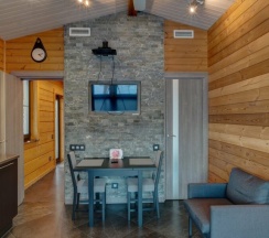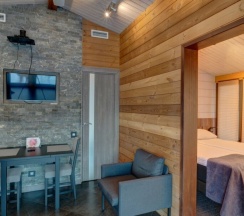 - Стильный дизайн и современная качественная отделка из камня и дерева создают комфорт и уют для наших гостей
