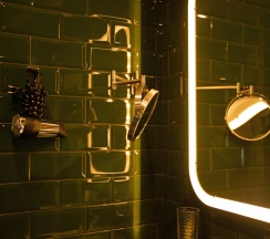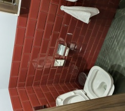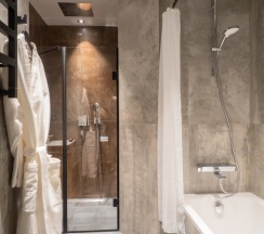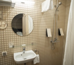 - В номере представлены тапочки и халаты, косметика российского бренда Natura Siberica, а также чайные и кофейные принадлежности