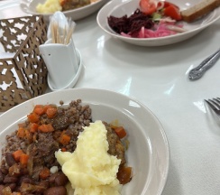 Меню Меню стало лучше. Ранее было очень много всего и не очень понятно что было брать. Особенно салатики. Теперь количество уменьшилось, но качество улучшилось. Очень хороша выпечка, остбенно торт по субботам. Живущие в люкс номерах питаются в отдельном зале. За это дополнительная благодарность.благодарность