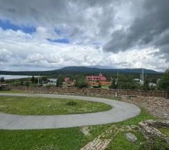Отличный гостевой комплекс, очень чистый, уютный, вкусная еда, интересный интерьер, персонал вежливый, вид просто бомбический! Из минусов только не очень хороший интернет, но возможно это даже плюс)