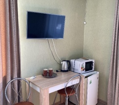 Хорошая, уютная по домашнему, гостиница.Чистый,аккуратный номер.Рядом есть магазин пятёрочка, кафе Волна, где можно вкусно поесть. Есть много мест, где можно поставить автомобиль, в 100 метрах находится спортгородок. В общем рекомендую.