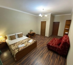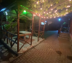 Отличное место для отдыха. Снимали семейный 2-х комнатный номер, в номере есть всё необходимое. Двор закрытый и ухоженный, поэтому можно смело отпускать ребенка погулять. Хозяйка встретила и всегда была на связи. Завтрак в соседнем доме в кафе, сытный и не однообразный. Также в соседнем доме есть магазин пятёрочка, хозяйственный магазин и много разных магазинчиков с сувенирами.