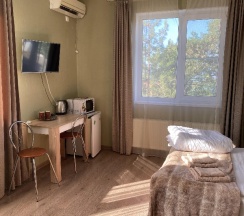 Отлично отдохнули!Просторный номер с балконом,белоснежное свежее белье.Управляющая Ольга окружила заботой и вниманием.Мангал,зона отдыха-все супер!Вкусные завтраки в кафе Волна. До прозрачного голубого моря пешком 8 минут.