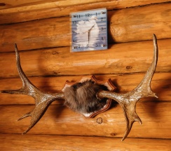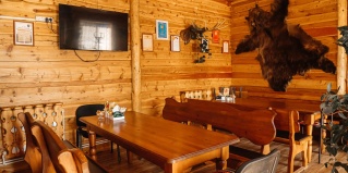 Для проживающих на территории комплекса есть кафе - замечательное, уютное кафе. Милый интерьер в стиле охотничьей избы с чучелами зверушек по стенам.