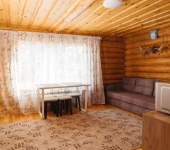 В коттедже №1 возможно проживание до 8 человек. На первом этаже расположен санузел, комната с 2-мя односпальными кроватями, а также небольшая комната с диванами, обеденной зоной, телевизором, холодильником, электрическим чайником и чайной посудой, микроволновкой. На втором этаже 3 раздельные комнаты - две комнаты, где размещены 2-х спальные кровати, комната с одной 2-х спальней кроватью и раскладным диваном; санузел и душ.