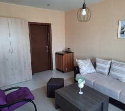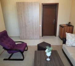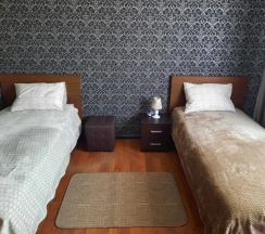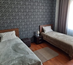В номере Стандарт был кондиционер, чайник, белые полотенца банные и для лица, набор гель для душа 2 шт и 2 шампуня, 1 зубная щётка с пастой. В комнате есть телевизор, кровать, шкаф, обеденный стол с 2 стульями, тумбочка, пуф для обувания обуви. В номере чисто (фото сделаны уже при выселении). Одеяло правда тонкое, ночью было холодно, не догадались включить кондиционер на тепло. В ванной комнате есть душ, одно не понравилось, что вода с душа стекает слабо в отверстие в полу, и заливается к раковине.. Т. к. душ отгорожен на половину. В целом все понравилось. На 1 этаже есть кафе, в котором можно заказать, толму, шашлык , люля - кебаб, пиццу, хачапури и другое.. Также там стоит кофе - машина. С утра, если надо, принесут чай с бутербродом-это бесплатно. Есть завтраки за 300р,довольно плотные по составу продуктов,но,как оказалось, этот завтрак надо заказывать с вечера на утро. В номере есть 1 тарелка, 2 бокала прозрачных, 2 из фарфора. И кувшин. Вилок, ложек нет. Постельное белье было белое, отглаженное. Кому нужно ночь переночевать- место подойдёт.