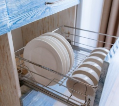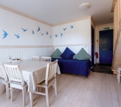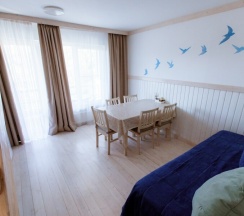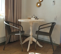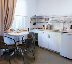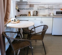 Номера очень хорошие, уютные, с новой мебелью и полным набором посуды. Есть кухня оснащенная, где уже стоит масло, уксус, сахар, соль, набор для чаепития.