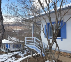 Очень чисто внутри домика, есть кухня. Есть балкончик с видом на горы. Если приезжать со своими продуктами (в Мезмае вряд ли вы найдете мясо), можно здесь жарить шашлыки и готовить себе завтраки.