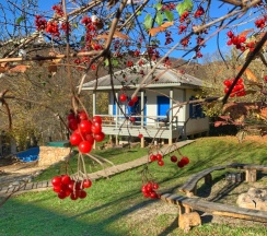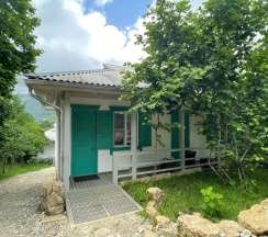 Очень чисто внутри домика, есть кухня. Есть балкончик с видом на горы. Если приезжать со своими продуктами (в Мезмае вряд ли вы найдете мясо), можно здесь жарить шашлыки и готовить себе завтраки.
