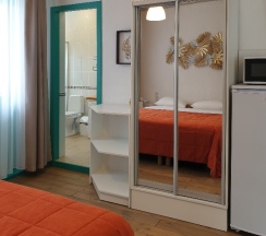 Номера очень хорошие, уютные, с новой мебелью и полным набором посуды. Есть кухня оснащенная, где уже стоит масло, уксус, сахар, соль, набор для чаепития.
